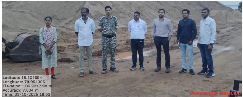 मद्दीकुंठा येथील सर्व्हे नंबर ५३३ मध्ये परवानगी असलेल्या ठिकाणी भेट देऊन पाहणी केली असता वाळूसाठा दुसऱ्याच जागेवर म्हणजेच सर्व्हे नंबर ३५६ जागेवर असल्याचे आढळले. मोजमाप अहवालानुसार, या ठिकाणी एकूण १५ हजार ६६५ ब्रास वाळूसाठा आढळून आला. साठवणूक आणि वाहतुकीसाठी संबंधितांकडे कोणताही वैध परवाना उपलब्ध नसल्यामुळे हा साठा अवैध घोषित करून जप्त करण्याची कार्यवाही करण्यात आली.