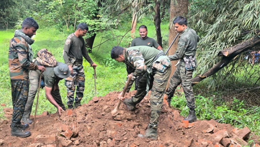 सविस्तर वृत असे आहे की. काल दिनांक 30/09/2025 रोजी पोस्टे कटेझरी येथील पोलीस पथक आणि एसआरपीएफचे जवान मौजा कटेझरी व मर्मा जंगल परिसरात अभियान राबवित असताना, जंगल परिसर शोध अभियान राबविते वेळी सदर जंगल परिसरात दोन ते तीन वर्ष जुने असलेले माओवाद्यांनी उभारलेले दोन स्मारक दिसून आले. सदर दोन्ही माओवादी स्मारक हे मागील काही वर्षांपासून अस्तित्वात होते. यावरून मा. वरिष्ठांच्या मार्गदर्शनाखाली सदर माओवादी स्मारकांची बिडीडीएस पथकाने तपासणी केल्यानंतर दोन्ही स्मारके पाडून टाकण्यात आले असून ते उध्वस्त करण्यात आले आहेत. तसेच स्थानिक नागरिकांच्या सहकार्याने सदर दोन्ही स्मारक उद्धस्त करण्यात आले असून, त्याठिकाणी शांततेचे प्रतीक म्हणून वृक्षारोपण करण्यात आले आहे.