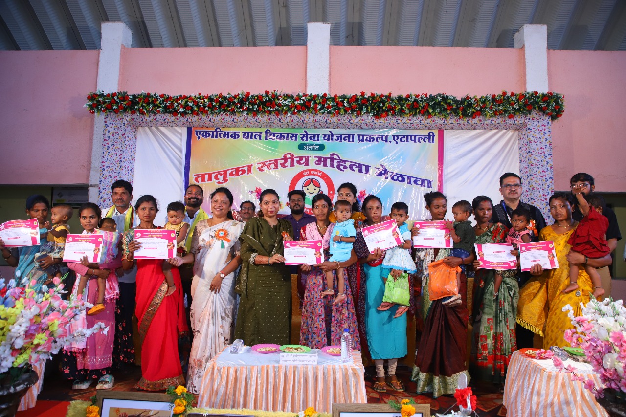 एकात्मीक बाल विकास सेवा योजना, प्रकल्प एटापल्ली यांच्या वतीने आयोजीत तालुकास्तरीय महिला मेळावा दिनांक 08 ऑक्टोंबर 2025 एटापल्ली येथे मोठ्या उत्साहात पार पडला. या मेळाव्याला महिलांचा उत्स्फूर्त प्रतिसादर लाभला.